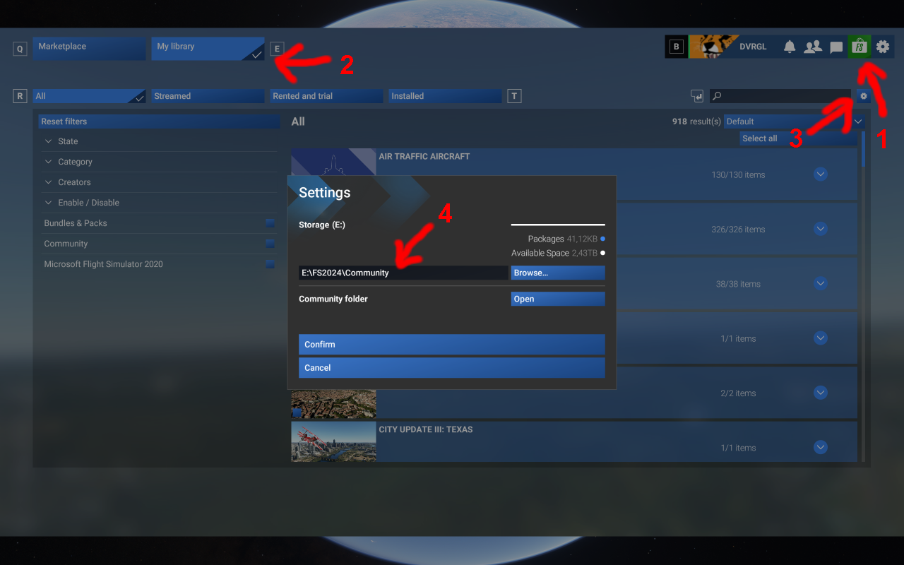 Diese Methode funktioniert unabhängig davon, wie Sie MSFS installiert haben, und ist die zuverlässigste Methode, um den richtigen Ordner zu finden.
